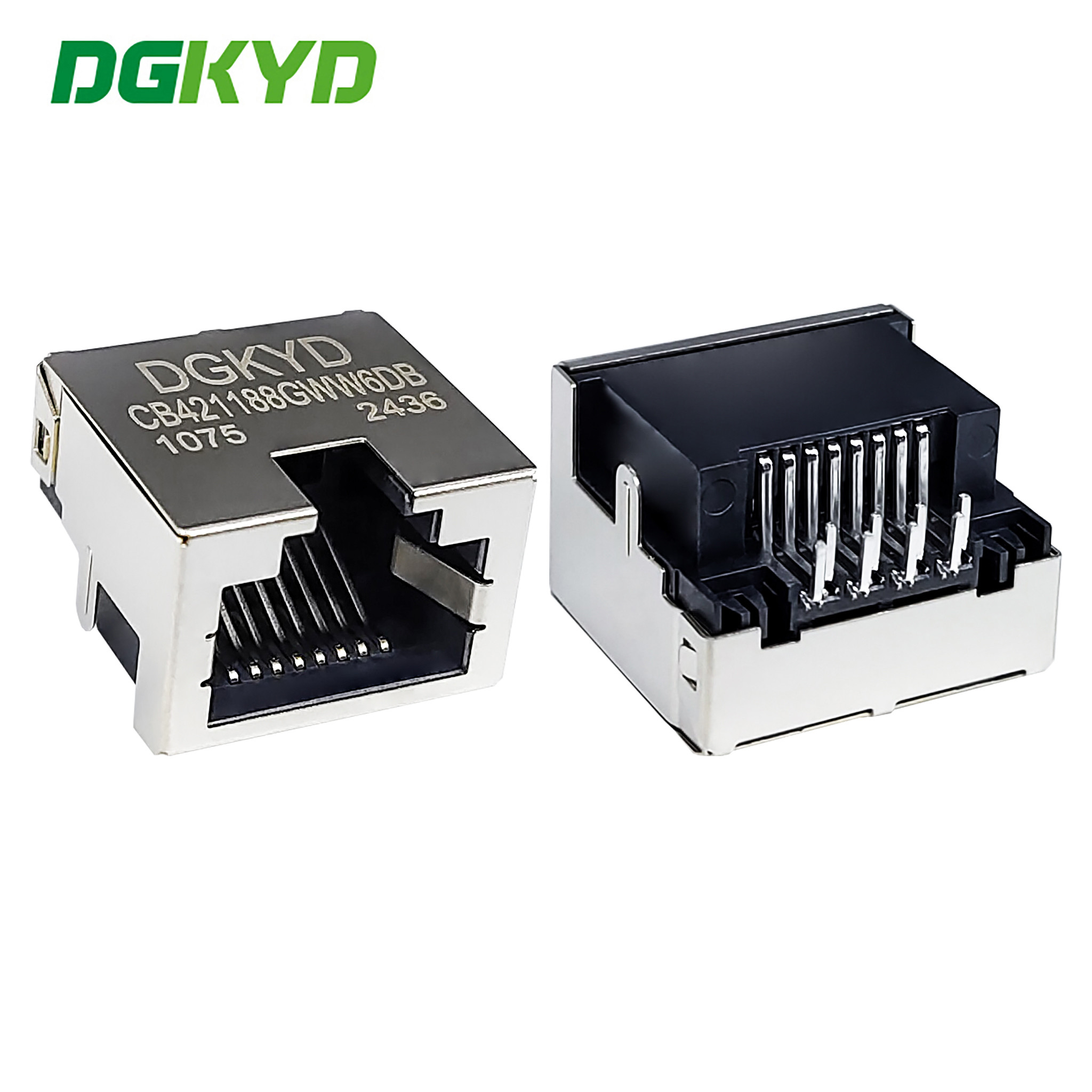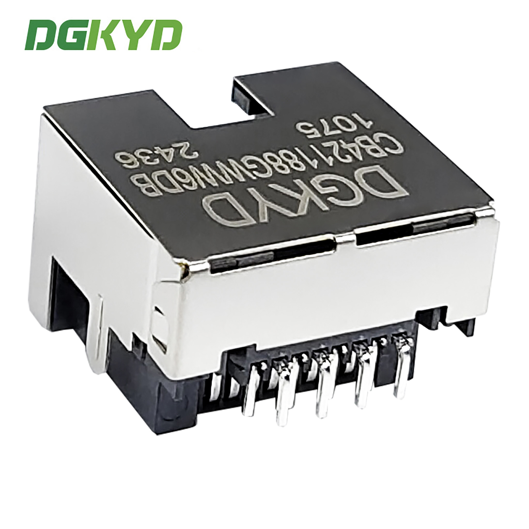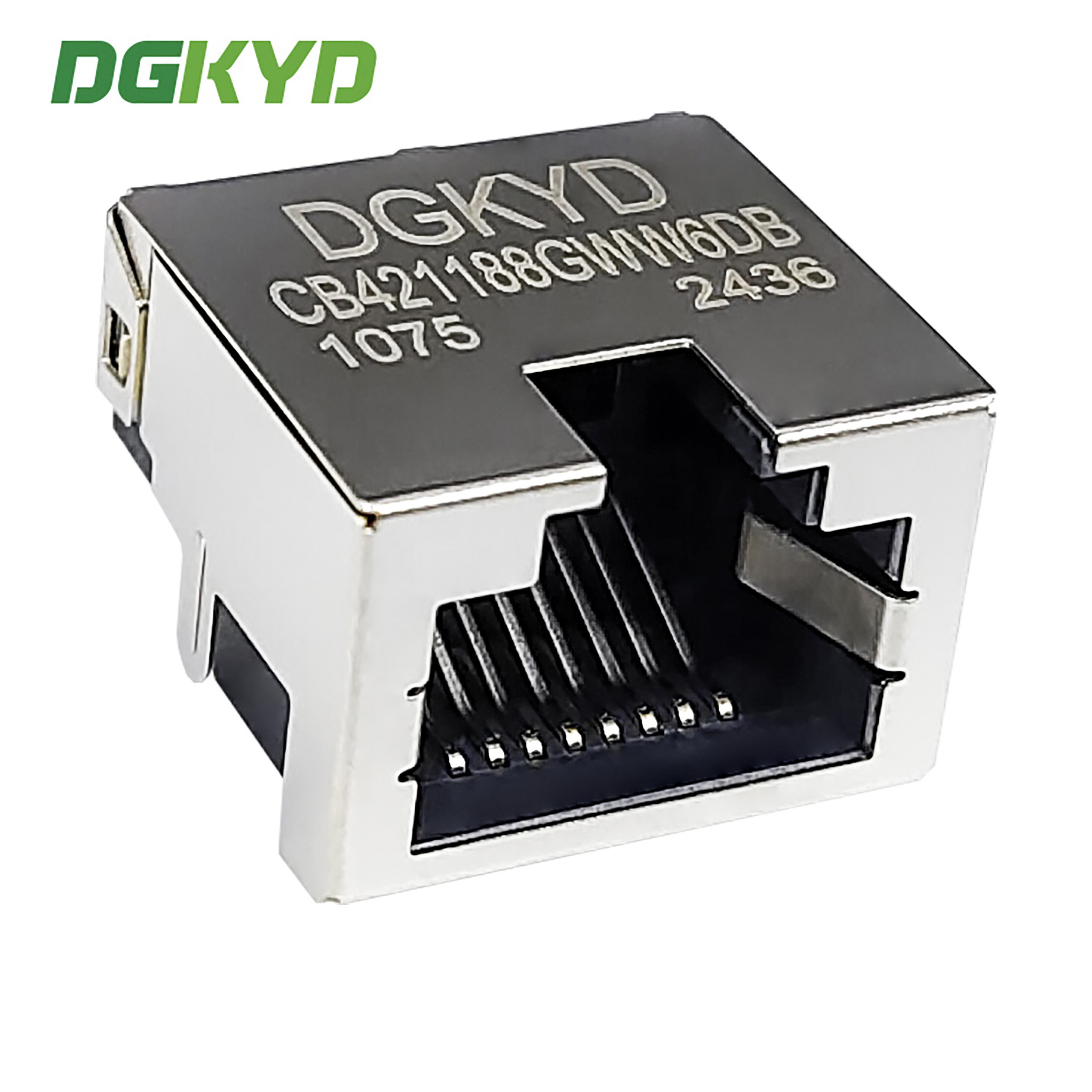 لوحة الغسيل ذات الدرع المعدنية ذات الدرجة المنخفضة Rj45 جاك SMT RJ45 4.2 DIP مع درع ونور DGKYDCB421188AB1W6DB1075