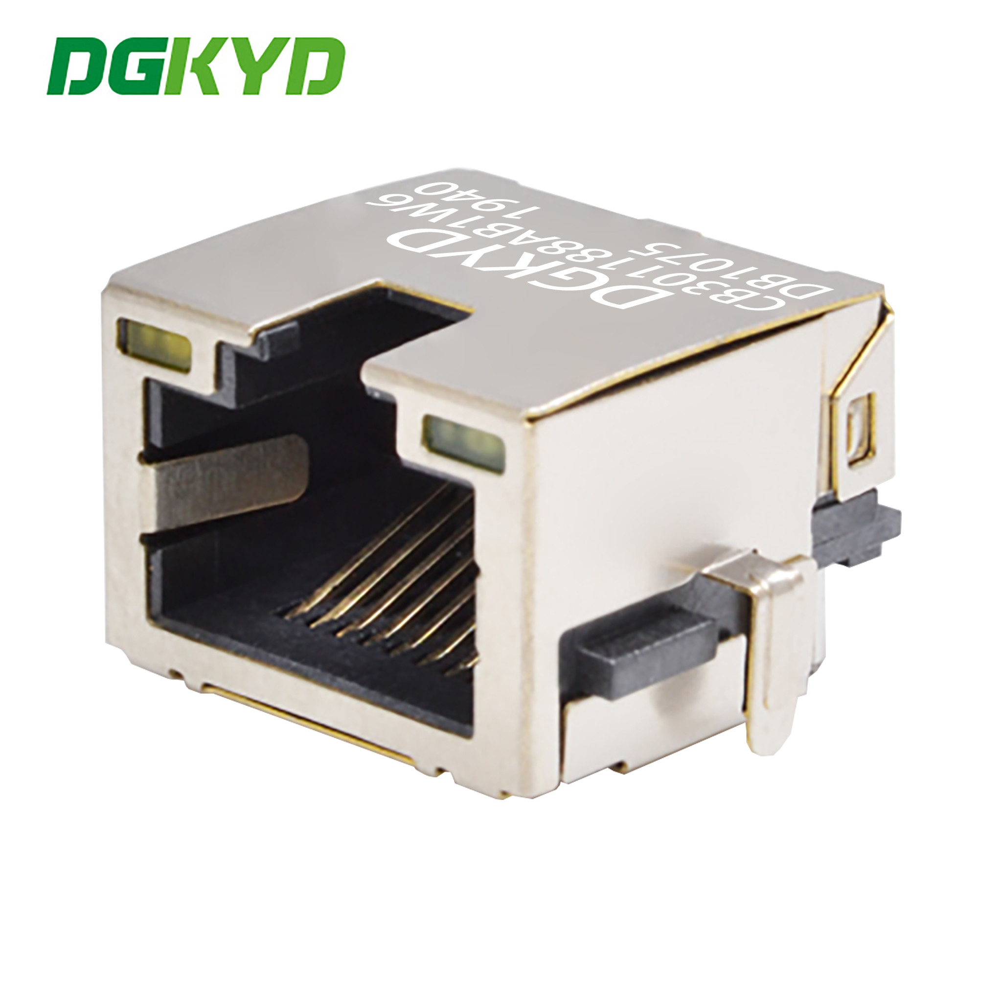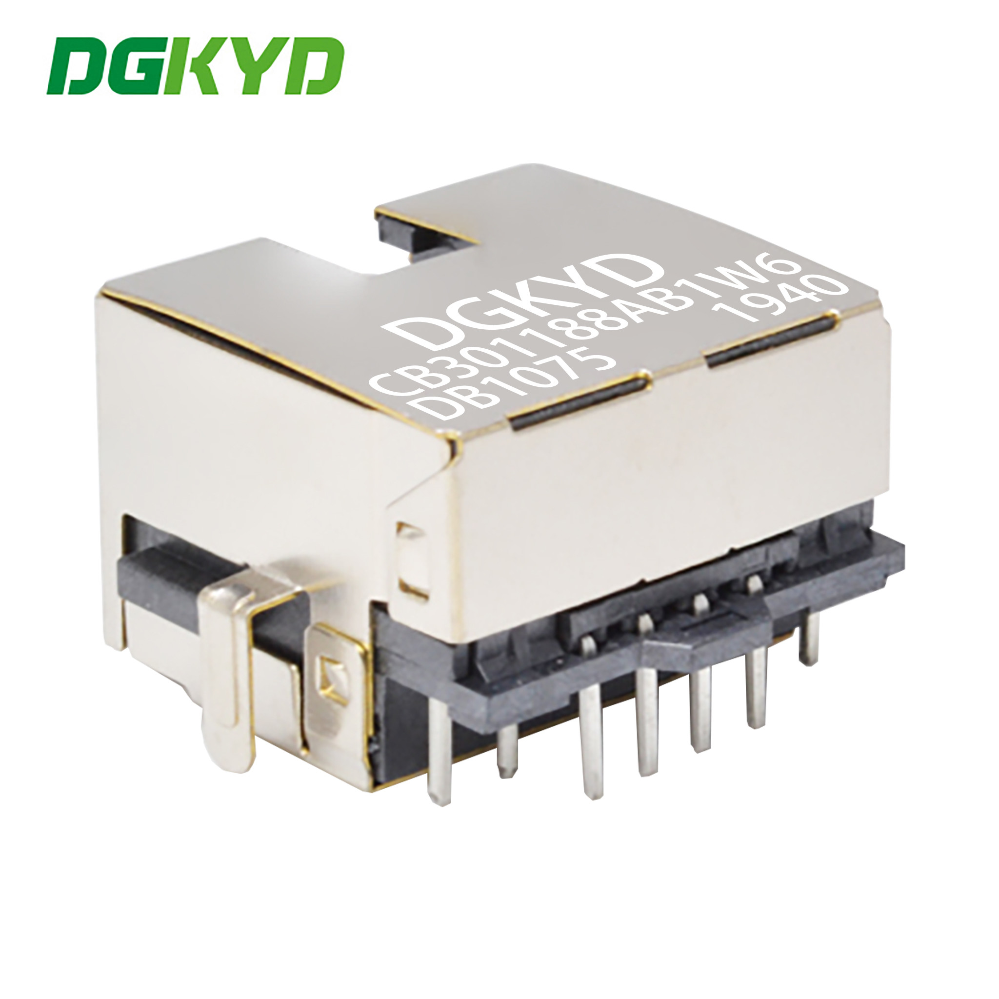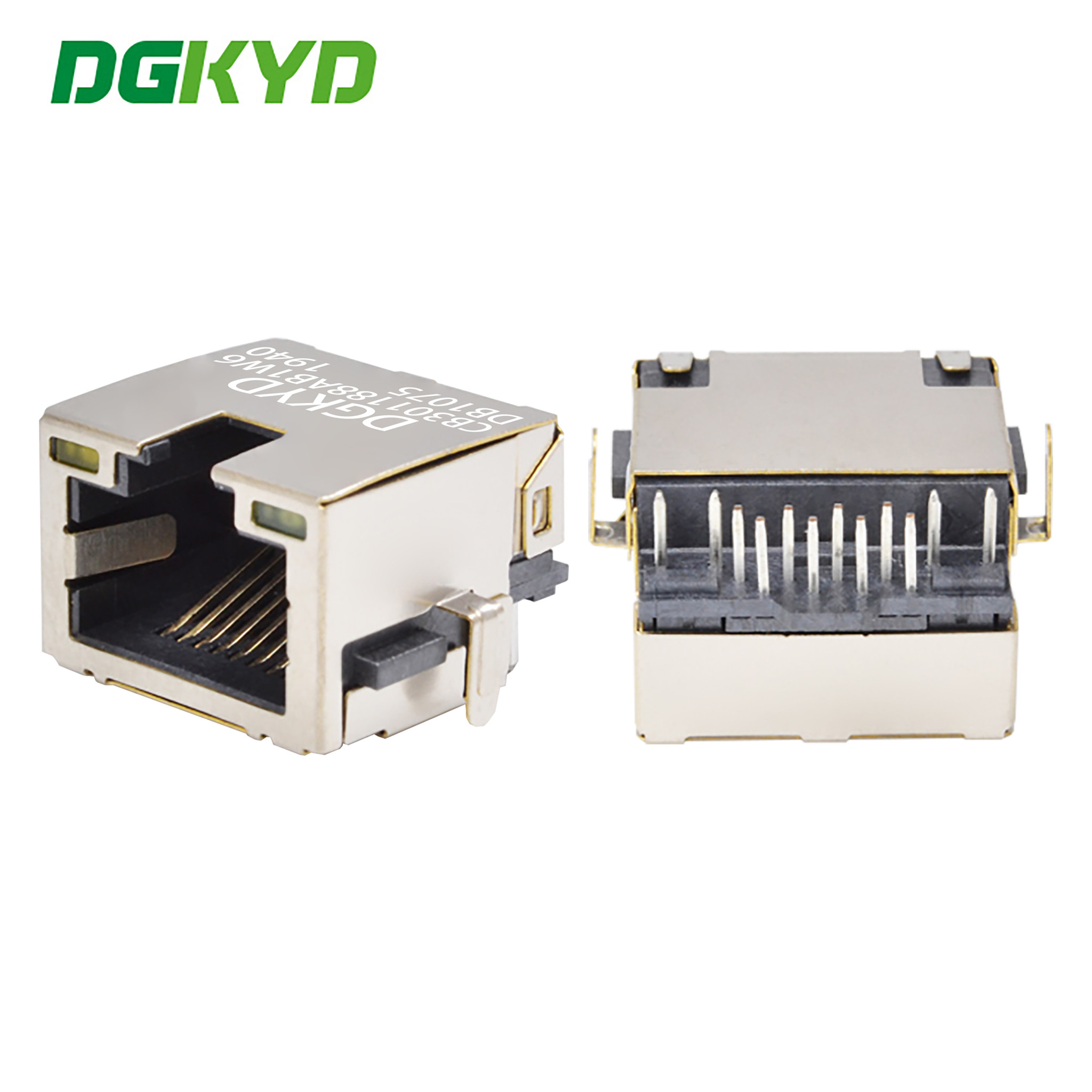 لوحة الغسيل ذات الدرع المعدنية ذات الدرجة المنخفضة Rj45 جاك SMT RJ45 4.2 DIP مع درع ونور DGKYDCB421188AB1W6DB1075