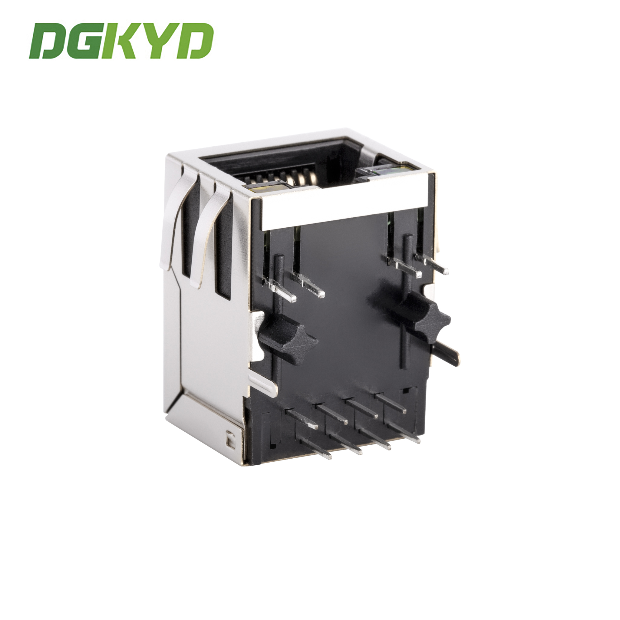 ربط رأس الكريستال RJ45 مصدر إناثي مع مؤشرات LED متكاملة وغلاف الحماية المعدنية رقم الجزء KRJ-101EYGENL