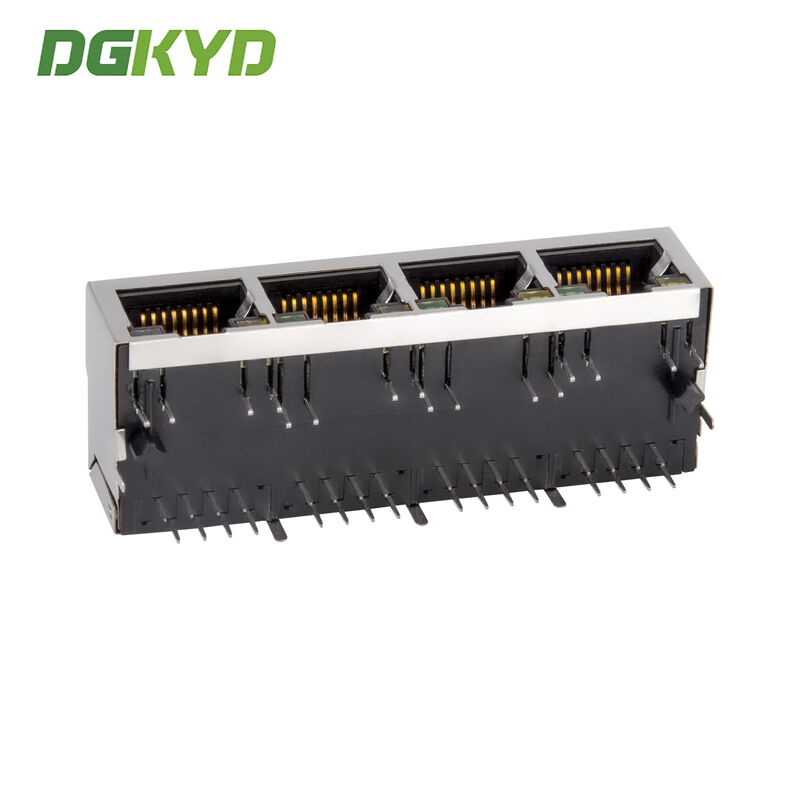 موصل RJ45 مزدوج المنفذ بدون مرشح مدمج، بدون شريط ضوئي، دبوس حماية أمامي 4.57 مم DGKYD112B035HWA1D13